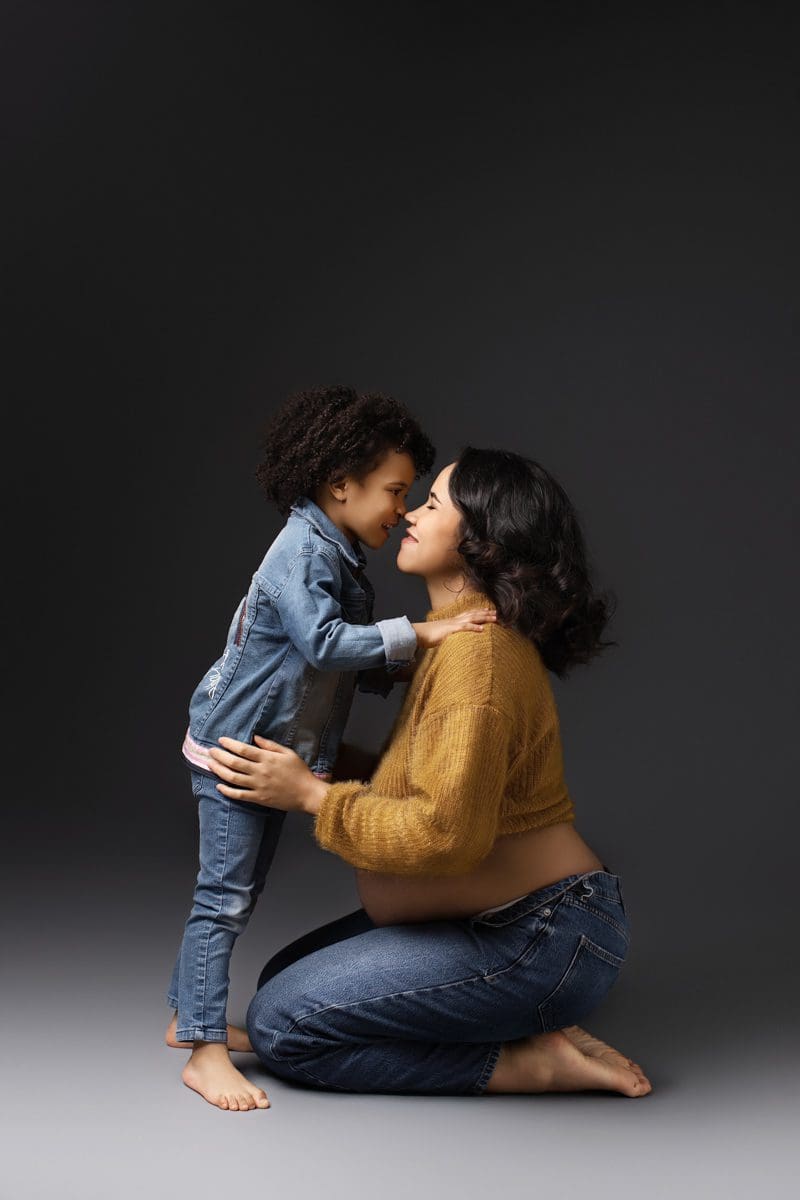 Le 7ᵉ mois de grossesse est souvent idéal pour réaliser une séance photo maternité en studio.